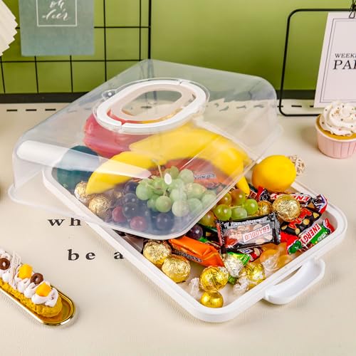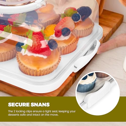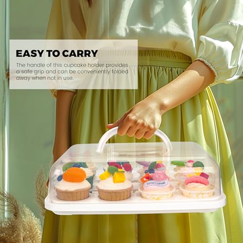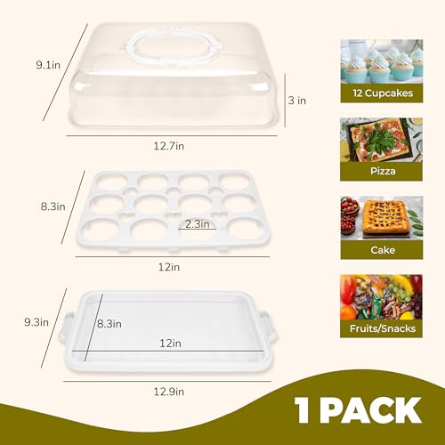 Cupcake Containers with Lid Rectangular Cake Carrier 3-in-1 Multipurpose Cupcake Holder for Muffins Pies Sweets Pastries Fruit or Snacks (White, 13" x 9" x 4")