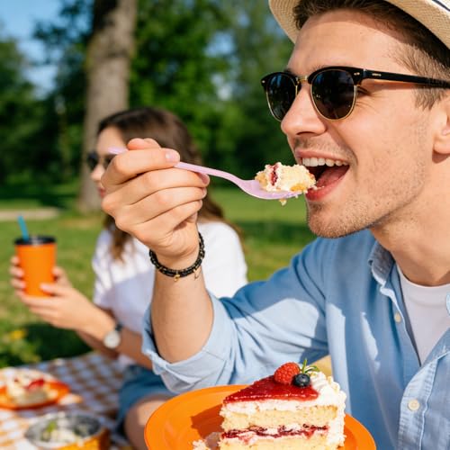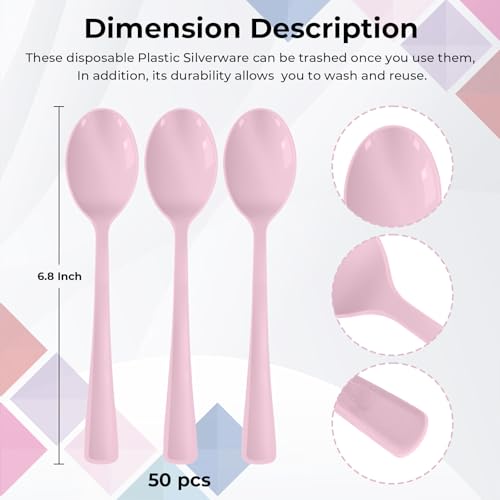 CXPSINC Pink Plastic Spoons Disposable, 50 Count - 6.8 Inch Heavy Duty Disposable Cutlery Utensils BPA-Free Solid for Party, Picnic, Catering, Daily Use & More (Pink)