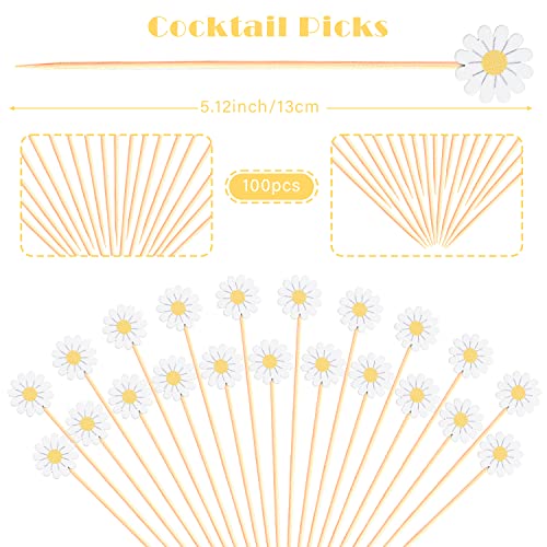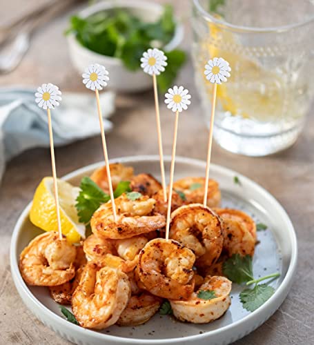 Daisy Cocktail Picks Springtime Floral Decorative Toothpicks Fruit Sticks Food Sandwich Appetizer Charcuterie Skewers, for Spring Flower Sunflower Daisy Decorations Boho Groovy Party Supplies