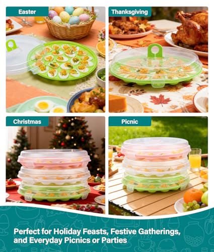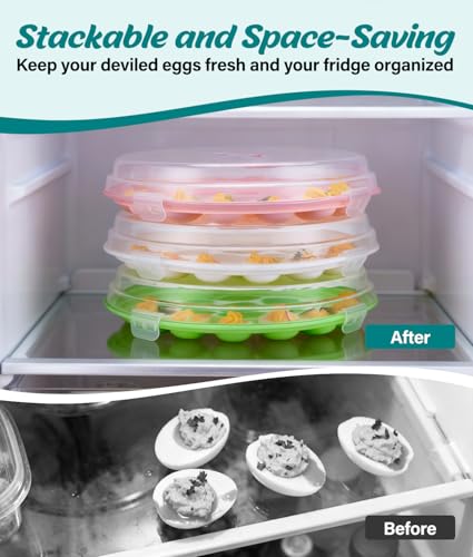 Deviled Egg Container with Lid, 3 Pack Stackable Deviled Egg Platter with Handle, 66-Slot Egg Carrier Tray for Fridge Storage, Easter, Christmas, Parties, Picnic, Dishwasher/Freezer Safe