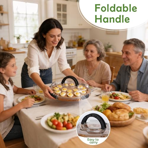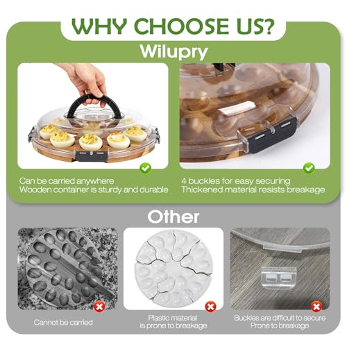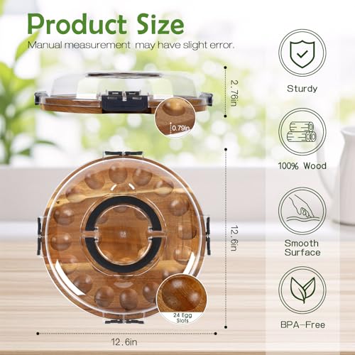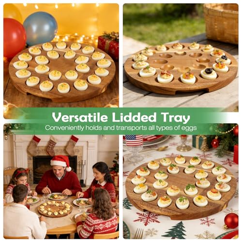 Deviled Egg Containers with Lid, Deviled Egg Platter Tray Carrier Plate Holder with 24 Slots, Acacia Wood Egg Dish for Easter Gift Party Holiday Kitchen Home