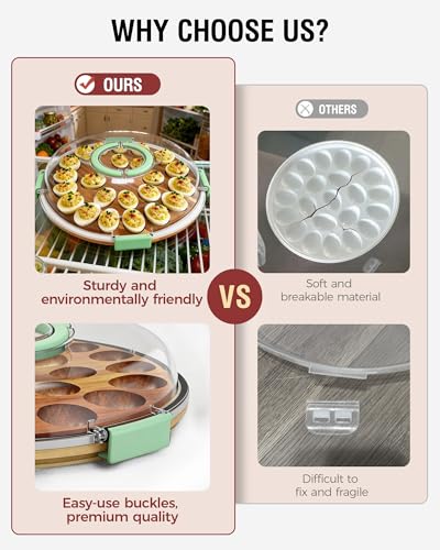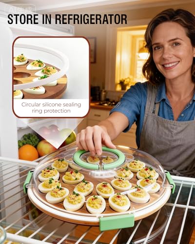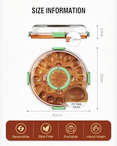 Deviled Egg Containers with Lid, Easter Gifts Set (24 Eggs), 2026 Upgraded Acacia Wooden Deviled Egg Tray Platter for Party and Home Kitchen, The Lid is Dishwasher Safe (Green)