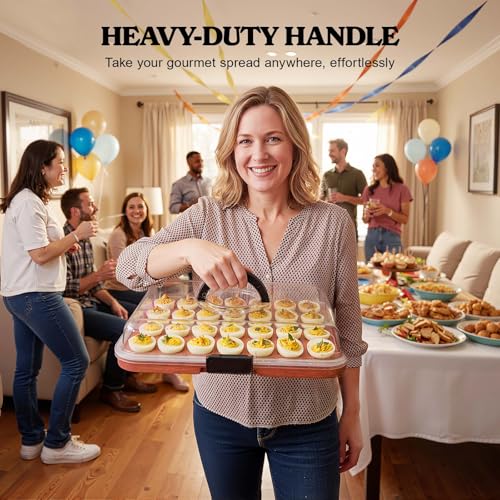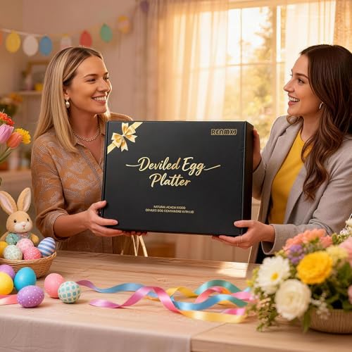 Deviled Egg Containers with Lid Easter Gifts Set (28 Eggs), 2026 Upgraded Acacia Wooden Deviled Egg Tray Platter for Party, Home Kitchen Gift for Women, The Lid is Dishwasher Safe (Black)
