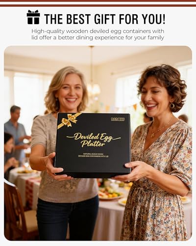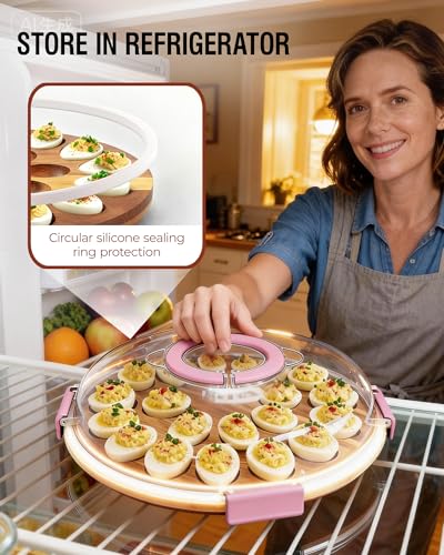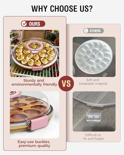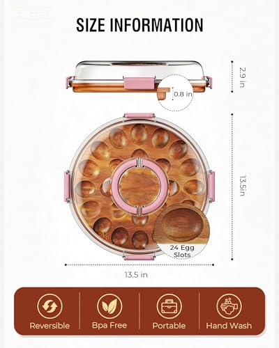 Deviled Egg Containers with Lid, Easter Gifts Set(24 Eggs), 2026 Upgraded Acacia Wooden Deviled Egg Tray Platter for Party and Home Kitchen, The Lid is Dishwasher Safe (Pink)