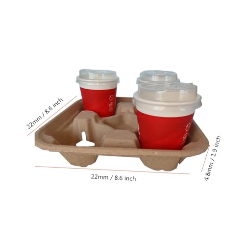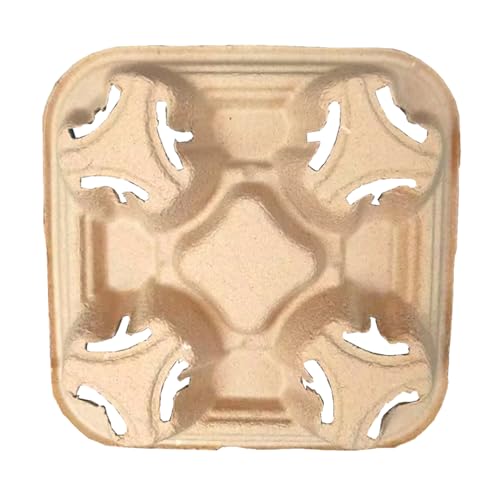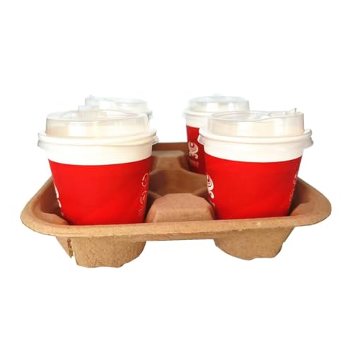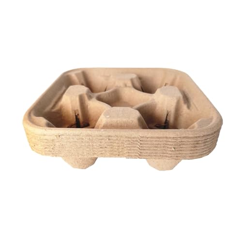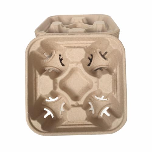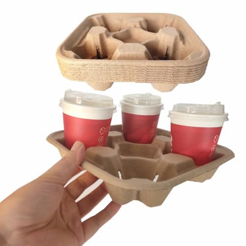 Disposable 4 Cup Drink Carrier Trays, Biodegradable Pulp Fiber Coffee Carry Tray, Compostable No Spill Drink Cup Holder for Hot Cold Beverages, Car, Food Delivery, Restaurants and Cafes Shop (36 Pack)