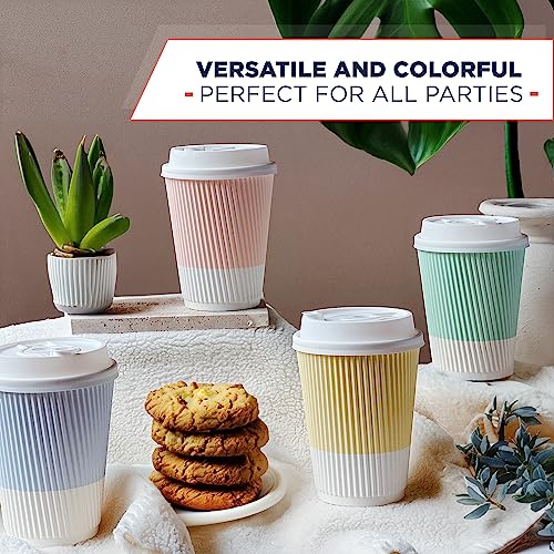 Disposable Coffee Cups With Lids - 12 oz To Go Coffee Cup With Lid (80 Set). Durable Togo Travel Paper Hot Cups Insulated For Hot and Cold Beverage Drinks, No Sleeves Needed (Assorted)
