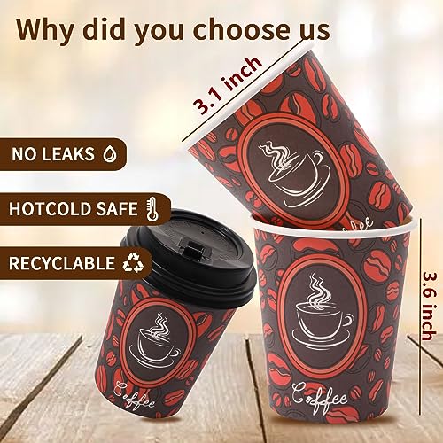 Disposable Paper Coffee Cups with Lids, Perfect For Tea & Hot Drinks - 100 Pack (8 oz, Coffee Bean Design)