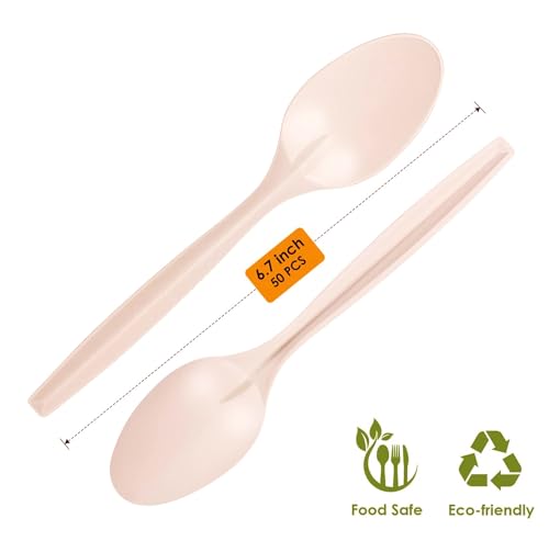 Disposable Spoons, 100% Compostable Soup Spoons, Cornstarch Based Large Disposable Utensils 6.7" Durable and Heat Resistant, Alternative to Plastic Spoons Party Supplies (50 Count)