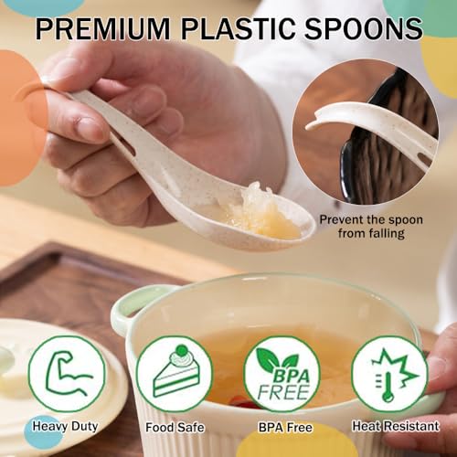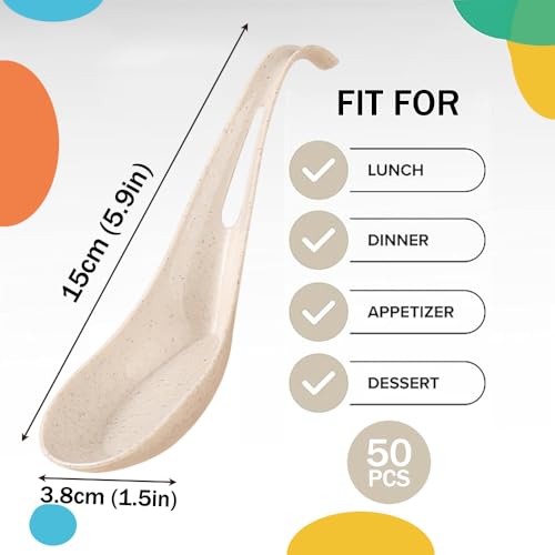 Disposable Wheat Straw Soup Spoons,Portable Deep Bottom Asian Spoons,Durable Chinese Utensils,Party Birthday Wedding Supply,50 Pieces