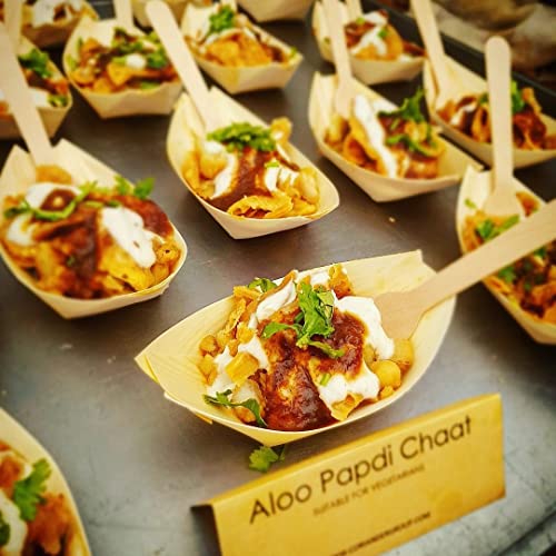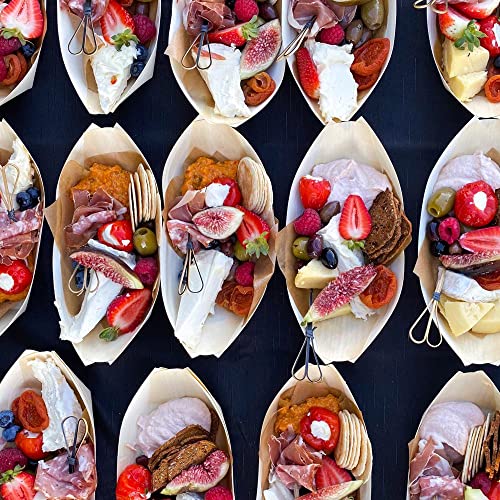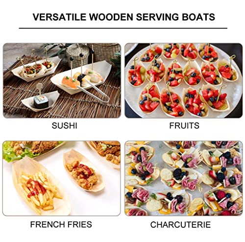 Disposable Wood Serving Boats Plates Trays,100 Pack 7", Disposable Plates for Appetizer Sushi Dessert Buffet Hors d'oeuvres Serving Tray, Biodegradable and Compostable Bowls (100, 7 INCH)