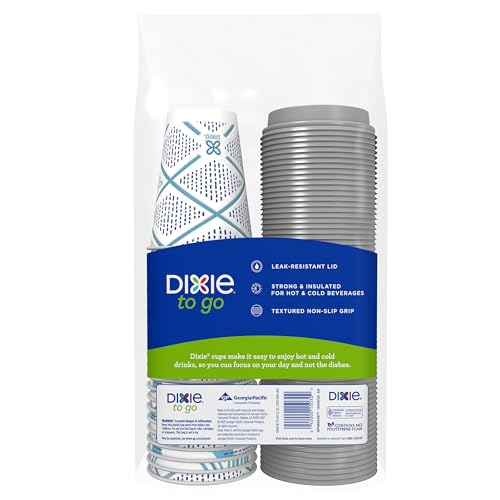 Dixie To Go Paper Coffee Cups With Lids, 12 oz, 66 ct, Disposable Insulated Paper Cups for On-The-Go Hot or Cold Beverages