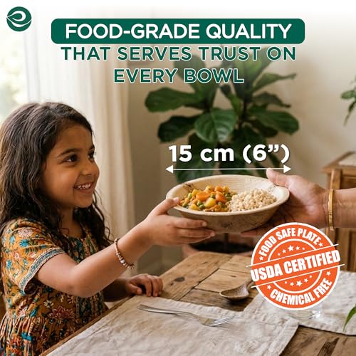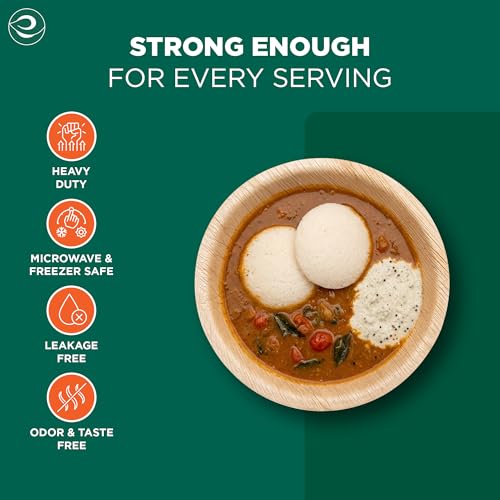 ECO SOUL Palm Leaf Bowl 20 pc, Small 6" (16 Oz) | Round Like Bamboo Bowls, Compostable, Biodegradable, Disposable Palm Leaf Bowls Eco-friendly | Sturdy, Microwave & Oven Safe