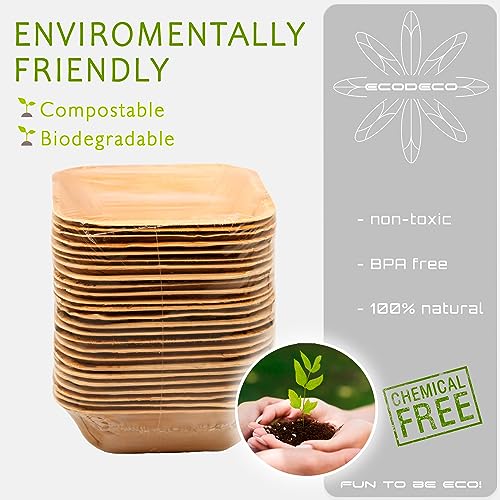ECODECO Palm Leaf Square Bowls - 50 Natural 5-Inch Disposable Like Bamboo Party Plates