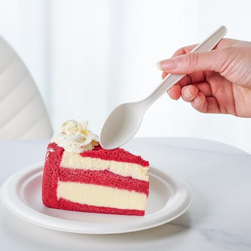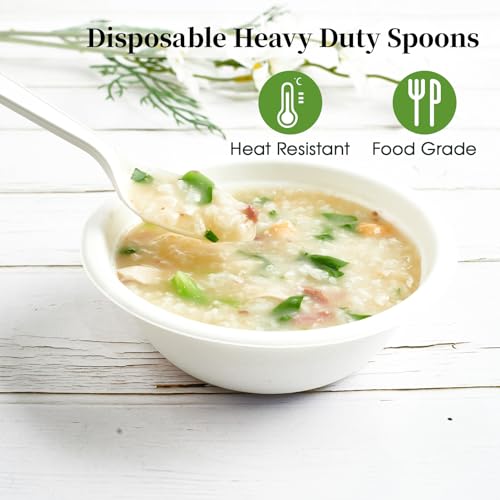 ECOLipak 150 Pcs White Disposable Spoons, 6.7 Inch Large Size Heavy Duty No Plastic Spoons for Party, BBQ, Picnic