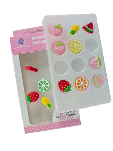 Edible Mixed 12pcs Fruit Sugar cake decorations, cupcake toppers, perfect Icing Cookies decro for Valentine's Day Birthday Halloween Thanksgiving Christmas party Team Dinner