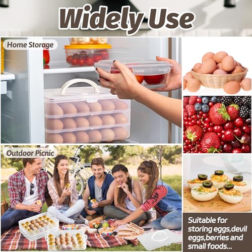 Egg Holder for 72 Eggs,3-Layer Plastic Egg Container,Deviled Egg Tray with Handle Lid,Devil Egg Holder for Refrigerator,Kitchen,Easter Party,Keep Fresh