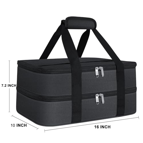 esouler Double Insulated Casserole Carrier Bag Hot & Cold Food Carrier Bag Lasagna Holder Lunch Bag for Picnics, Parties, Travel, Fits 9 x 13 Inches Casserole Dish-Black