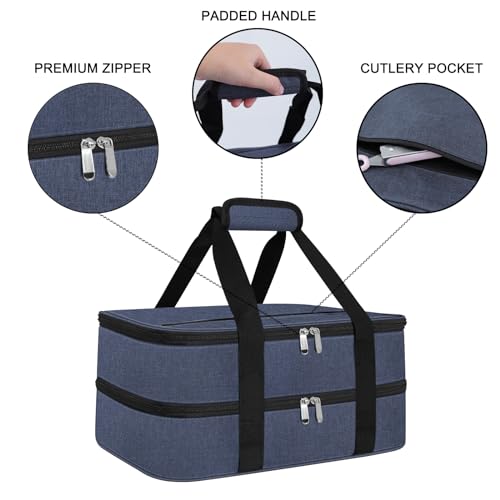 esouler Double Insulated Casserole Carrier Bag Hot & Cold Food Carrier Bag Lasagna Holder Lunch Bag for Picnics, Parties, Travel, Fits 9 x 13 Inches Casserole Dish-Blue