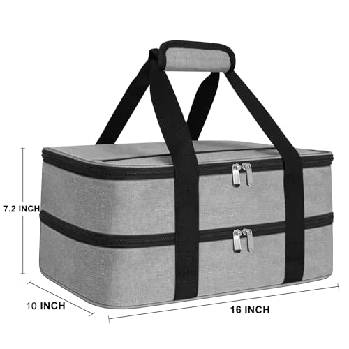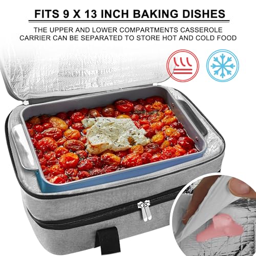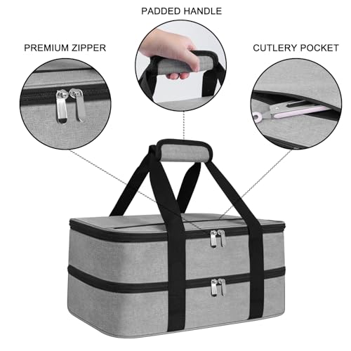 esouler Double Insulated Casserole Carrier Bag Hot & Cold Food Carrier Bag Lasagna Holder Lunch Bag for Picnics, Parties, Travel, Fits 9 x 13 Inches Casserole Dish-Grey
