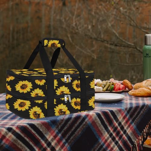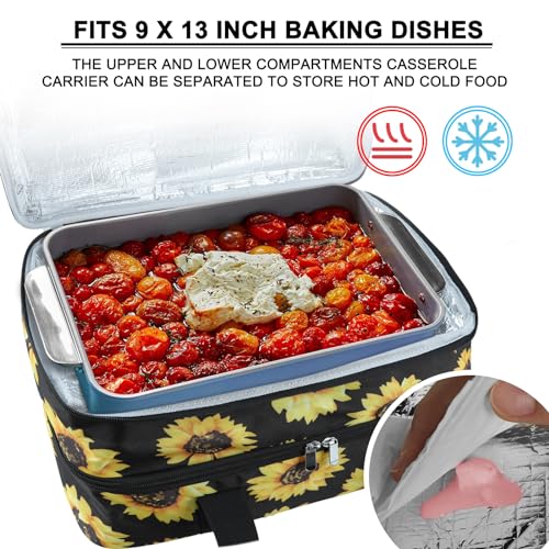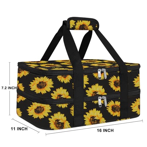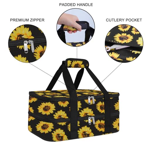 esouler Double Insulated Casserole Carrier Bag Hot & Cold Food Carrier Bag Lasagna Holder Lunch Bag for Picnics, Parties, Travel, Fits 9 x 13 Inches Casserole Dish-Sunflower