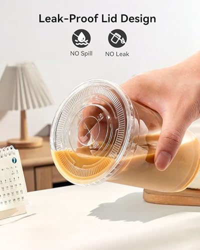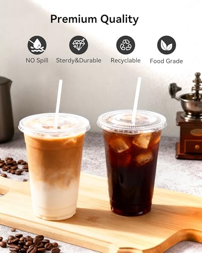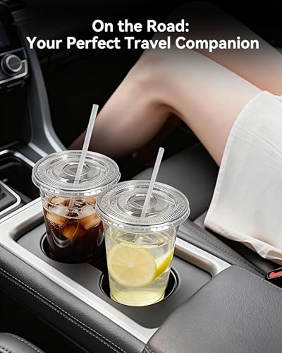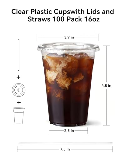 EUHOMY 100 Pack 16oz Clear Plastic Cups with Lids and Straws, Bulk Disposable Coffee Cups, BPA-Free Food Safe Takeaway Cups for Iced Coffee, Smoothies & Cold Drinks
