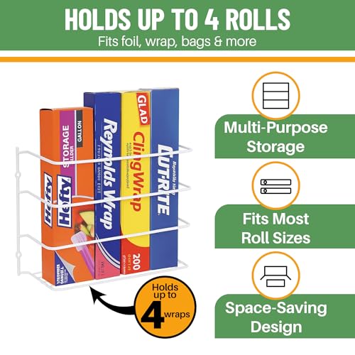 Evelots Kitchen Wrap Organizer - 4 Pack - Hold up to 4 Plastic, Foil, Paper, Wax - Cabinet Door, Wall Rack Basket - Sandwich, Freezer, Food Bag Storage - Laundry Supplies - Plastic Coated Metal