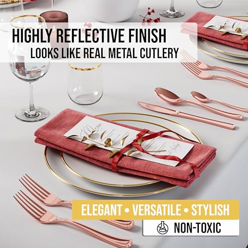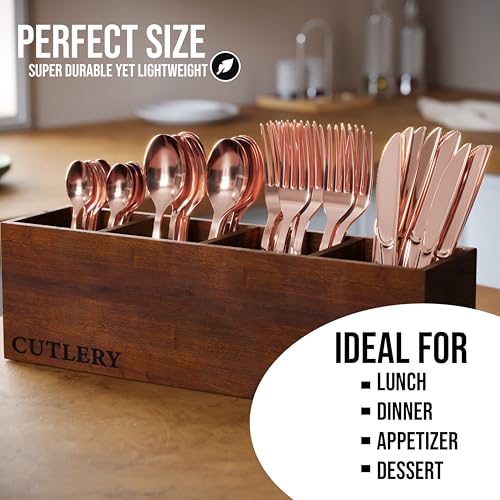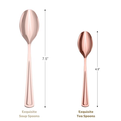 Exquisite Rose Gold Plastic Tea Spoons Heavy Duty 160 Pieces Rose Gold Plastic Silverware Heavy Duty Disposable Silverware Set, Disposable Tea Spoons Eating Utensils Sets Flatware Set For Parties