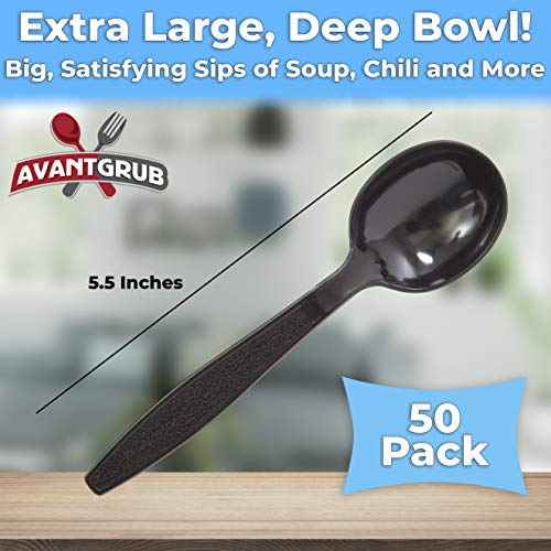 Extra Sturdy, Pro-Grade Plastic Soup Spoons 50 CT. Black, Heavy Duty Recyclable Utensils for Soups, Stews, Chili and Gumbo. Heavyweight Round Spoon is Perfect for Restaurants, Diners and Catering