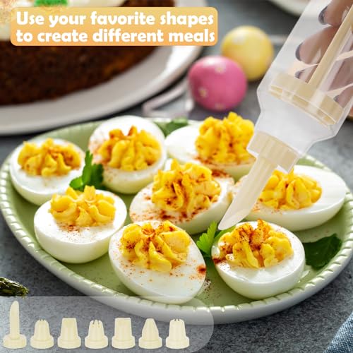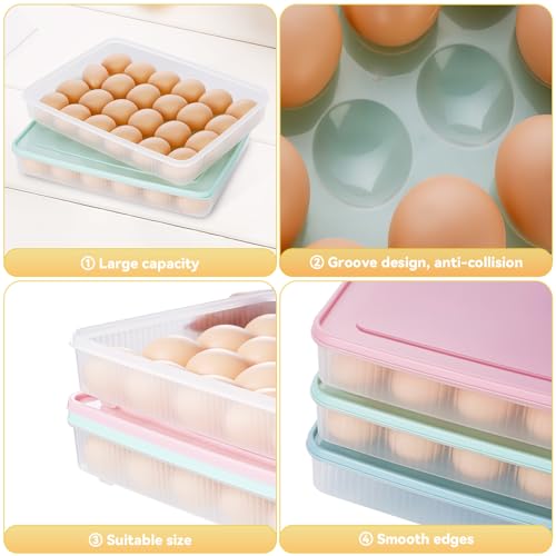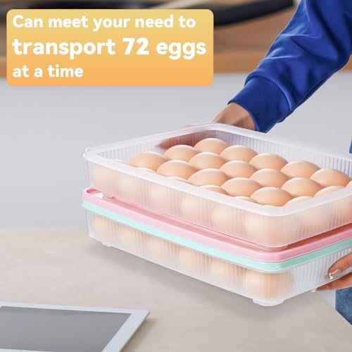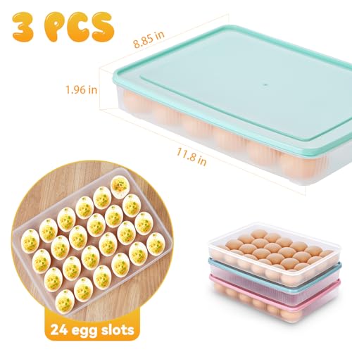 FACULX 3 Pack Deviled Egg Containers with Lid and 8 Pcs Deviled Egg Injector Piping Tool, Egg Organizer for Refrigerator, Fridge Stackable Countertop Portable Egg Platter (pink,blue,green)
