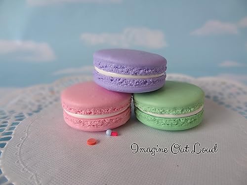 Fake Macarons 2" Set Faux Purple, Pink and Green Artificial Food Cookie Prop
