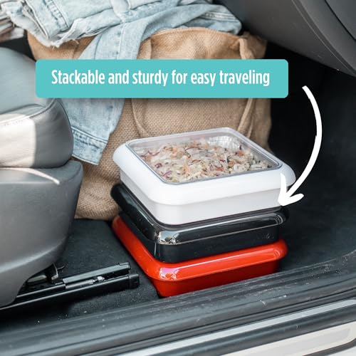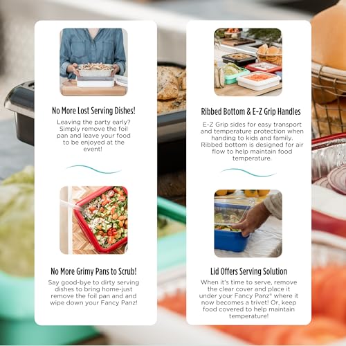 Fancy Panz - Aqua 8x8" Aluminum Foil Pan Carrier with Lid - Elevated Food Serving Tray - Portable Casserole Carrier with Lid - Made in the USA Hosting Essentials