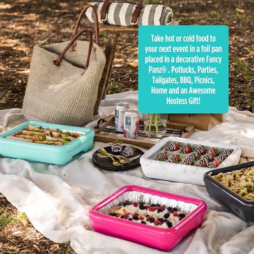 Fancy Panz - Aqua Classic Aluminum Foil Pan Carrier with Lid - Elevated Food Serving Tray - Portable Casserole Carrier with Lid - Made in The USA Hosting Essentials