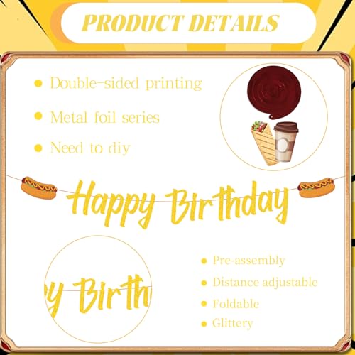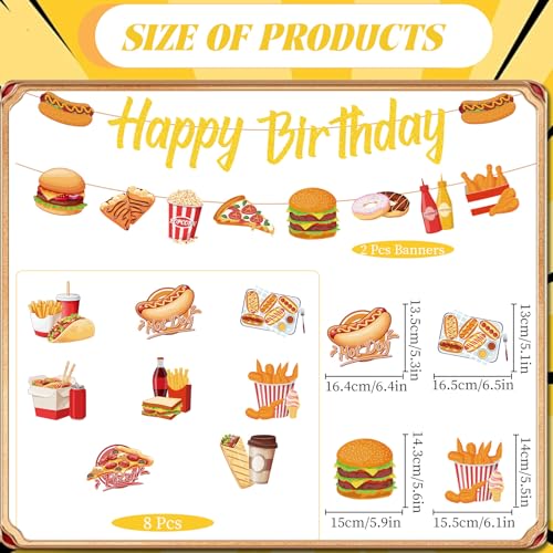 Fast Food Birthday Party Decorations, 10Pcs Glitter Happy Birthday Banner and Hanging Swirls Decoration Pizza Hamburger Hot Dog Decor French Fries Popcorn Donuts Themed Party Supplies