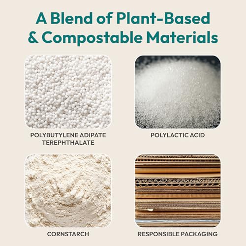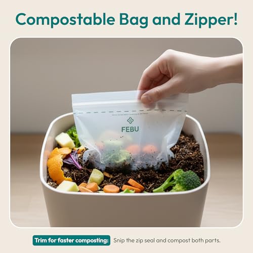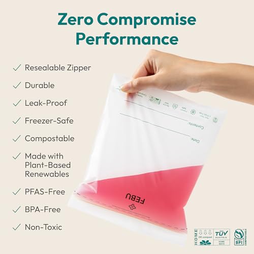 FEBU Compostable Food Storage Bags Variety Pack, 260 Count | Compostable & Biodegradable | PFAS & BPA Free, Non-Plastic | Drawer Organizer Box | 90 Snack, 90 Sandwich, 50 Quart, 30 Gallon
