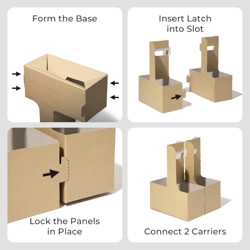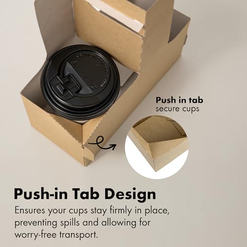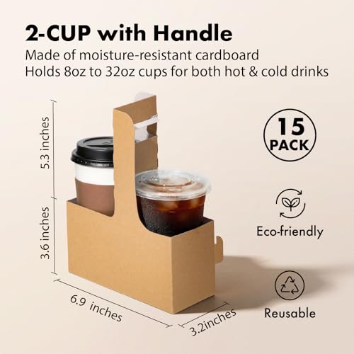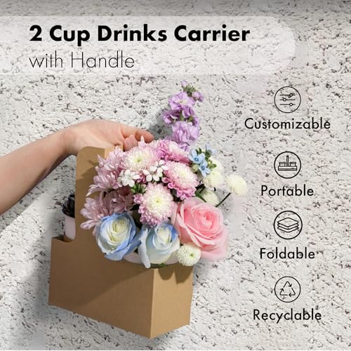 FMP Brands 2 Cup Disposable Drink Carrier with Handle, 15 Pack Kraft Paperboard Handled Drink Carriers 12-30 oz to Go Coffee Cup Holder, Cup Carrier for Cold Hot Drinks, Valentine Mother's Day
