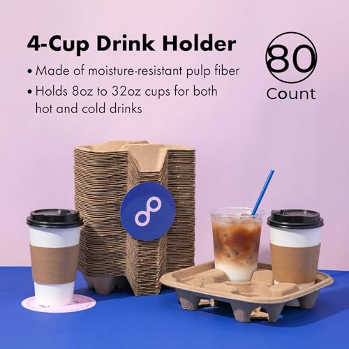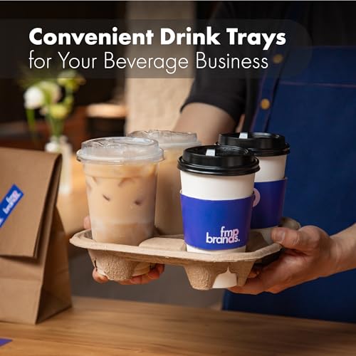 FMP Brands 4 Cup Disposable Drink Carrier Trays, 80 Pack Compostable Pulp Fiber Cup Holder for 8-32 oz Cup, Durable to Go Coffee Cup Holders for Delivery Service, Uber Eats