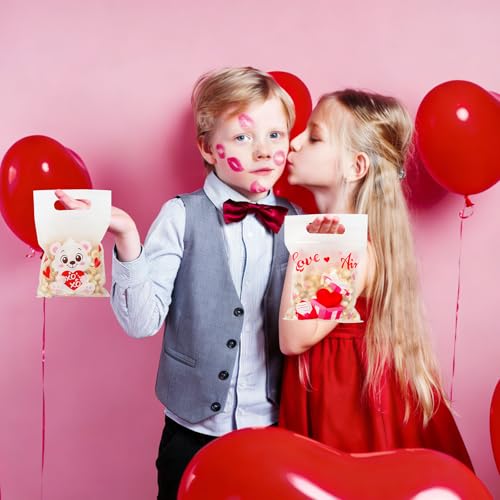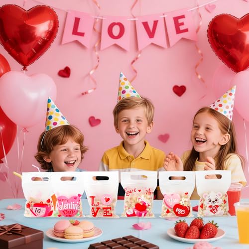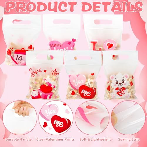 FOIMAS 36pcs Valentine's Day Cellophane Gift Bag, Heart Candy Treat Bags with Handle and Seal Ziploc Bag for Valentine's Day Party Supply Classroom Scool Gift Exchange