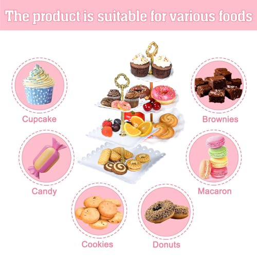 Frigg Dessert Table Display Set,10Pcs Cake Stand,4 Pcs 3 tiered Cupcake Stands and 6 Pcs Dessert Trays serving trays for Party Baby Shower Wedding Tea Party Decorations