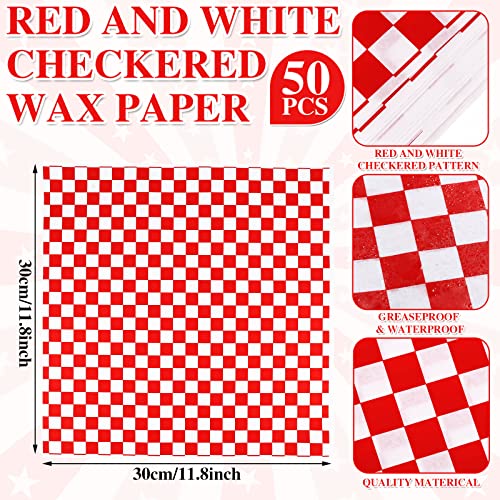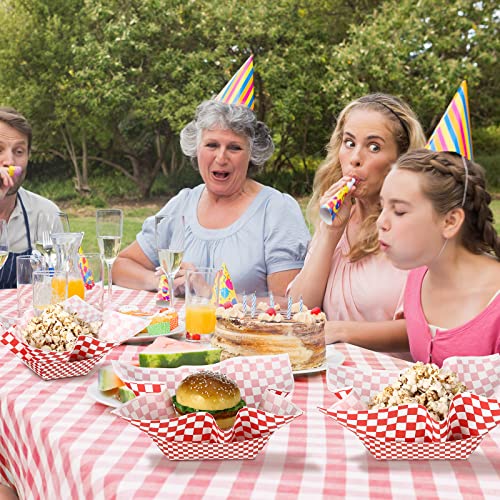 Geosar 100 Pcs Gingham Party Supply Disposable Paper Food Tray Bulk Disposable Food Boat with Checkered Wax Paper Sheet Checkered Wrapping Supply for Carnival Picnic Birthday Party (Red)