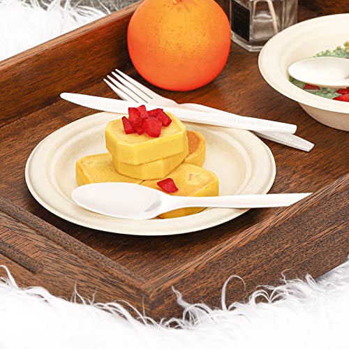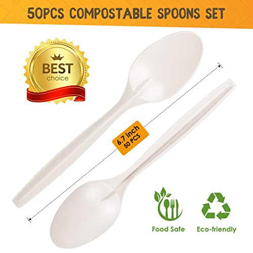 Gezond Compostable Spoons 50 Pack 6.7 Inch Disposable Spoons No Plastic Biodegradable Cutlery Set Heavy-duty for Party Wedding Camping Office Picnic