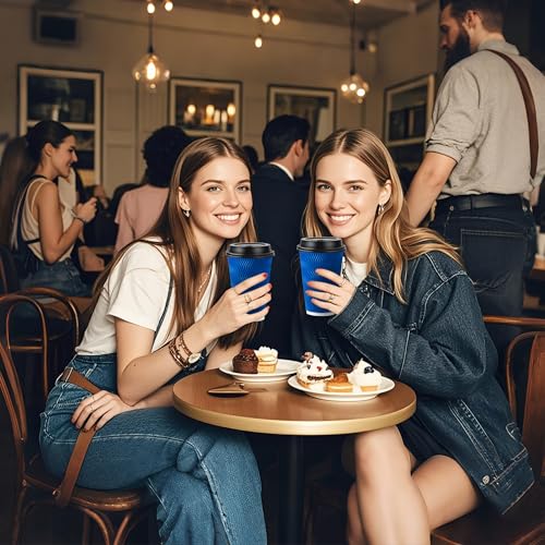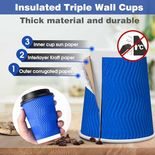 Ginkgo 60 Pack 12 oz Disposable Coffee Cups with Lids, Double Wall Insulated Ripple Paper Cups, Leak Proof To Go Coffee Cups for Hot Beverages