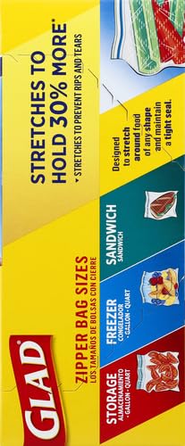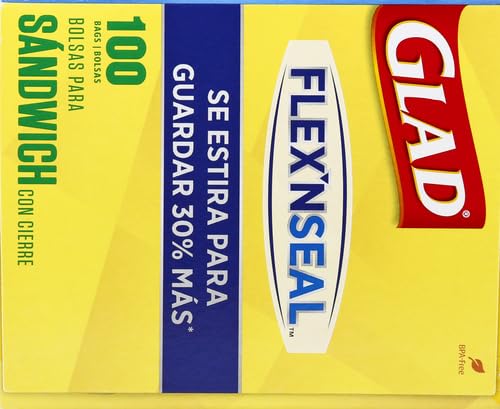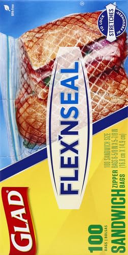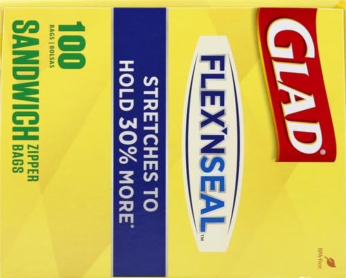 GLAD FLEXN' SEAL Zipper Food Storage Sandwich Bags, On-the-Go Snack and Lunch Bags, Zipper Sandwich Sealer, Microwave Safe, BPA Free, 100 Count (Pack of 1)