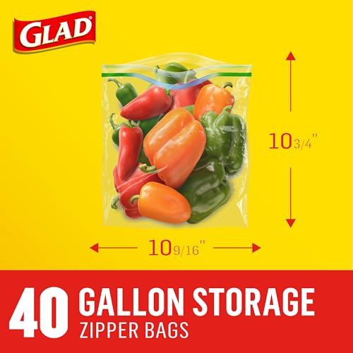 Glad Zipper Food Storage Plastic Bags, Gallon, 40 Count (Package May Vary)