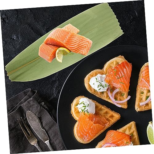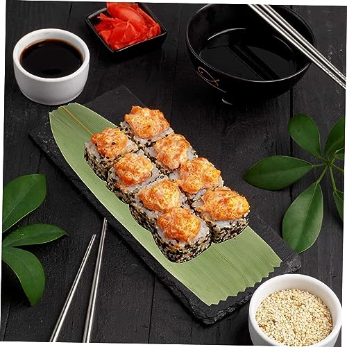 GLEAVI 100Pcs Bamboo Leaves Decorative Sushi Dish Mats Japanese Food Presentation Natural Bamboo Material for Sashimi Plating Suitable for Sushi Parties and Barbecues