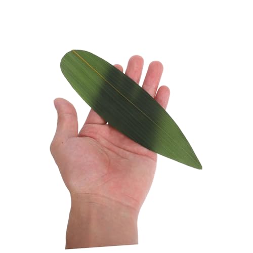 GLEAVI 100pcs Bamboo Leaves Sushi Decorative Mats Fake Leaves for Dish Serving Sashimi Plate Decoration Japanese Style for Sushi Platter and Cold Dishes