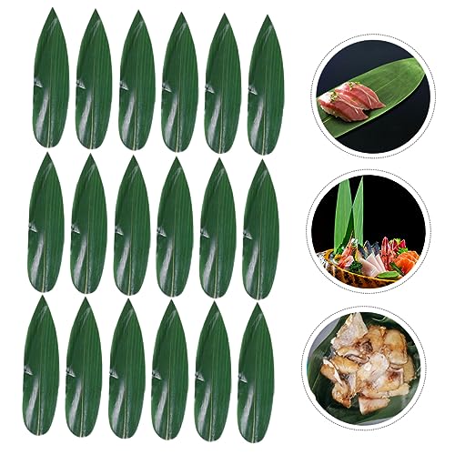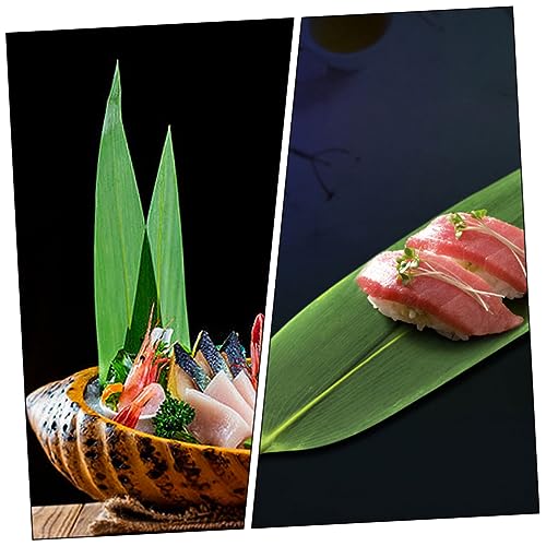 GLEAVI 50Pcs Japanese Sushi Decorative Leaves Sashimi Mat Green Food Ornament for Sushi Plate Decorations and Elegant Leaf Accessory for Serving