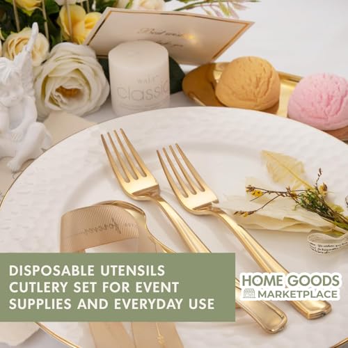 Gold Disposable Cutlery Set, Gold Forks + Spoons, (120 Count), Disposable Silverware assortment