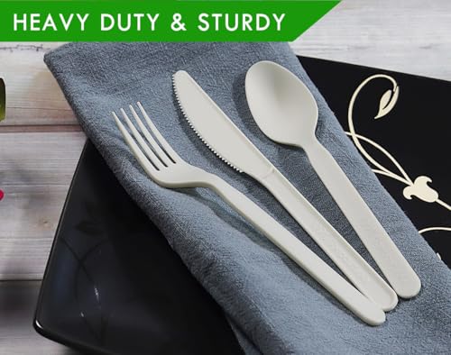 GreenWorks 200 Count Heavy-duty Compostable spoons, BPI Certified Large Disposable Flatware Utensils Spoon