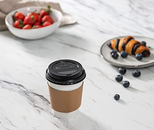 GUSTO [12 oz. - 100 Sets Disposable Coffee Cups with Lids and sleeves - To Go Paper Hot Cups for Travel and Office Use - Formerly Comfy Package