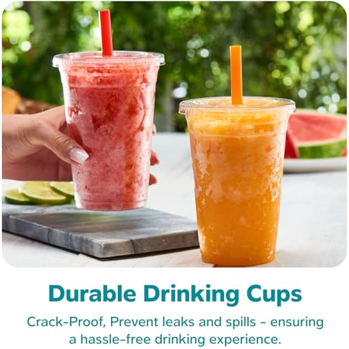 GUSTO [20 oz. - 100 Count Clear Cups with Flat Lids & Straws - Disposable Clear Drinking Cups for Iced Coffee, Cold Drinks, Milkshakes, and Smoothies - (Formerly Comfy Package)